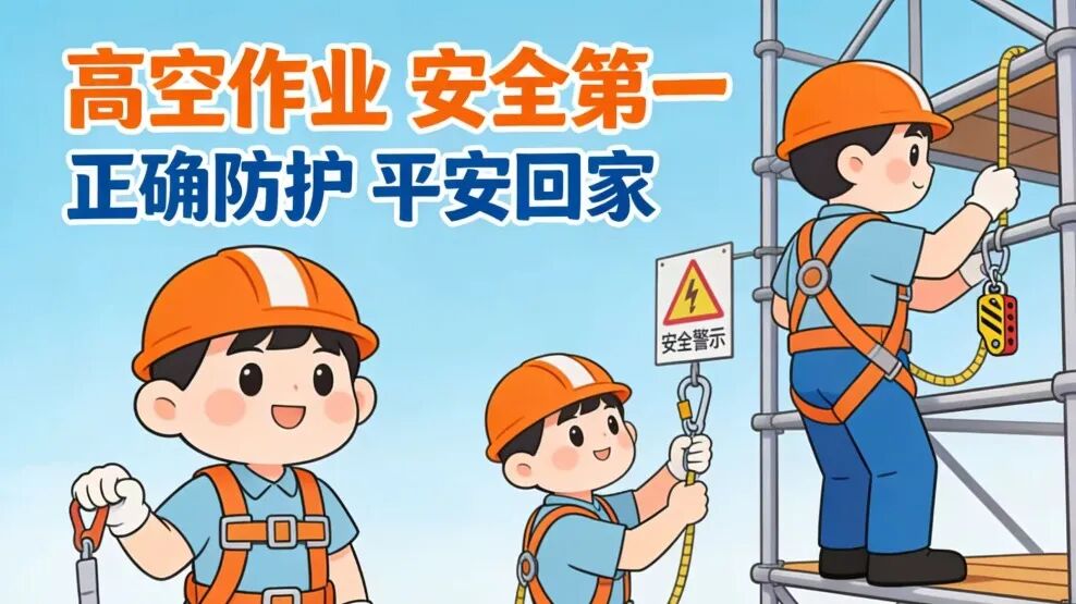 高空作业人员必须持证上岗,正确佩戴安全帽、安全带等防护用品,安全带需做到“高挂低用”;作业平台需牢固可靠,设置防护栏杆和挡脚板,临边洞口需加装防护设施或警示标识;严禁在大风、暴雨等恶劣天气下进行高空作业。
