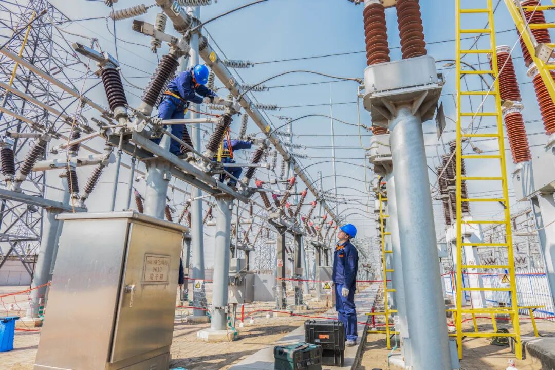 3月22日,辽宁本溪供电公司员工姜宗志、顾致一等在小市66千伏变电站基建改造工程现场拆除旧设备。(魏强)