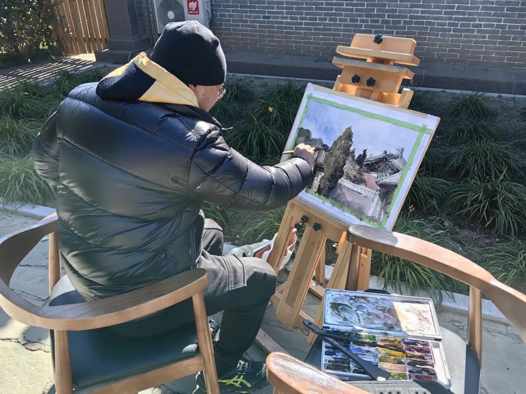 活动现场,来自全国各地的水彩名家齐聚一堂,他们带着对艺术的热爱,共同走进这座承载着千年历史文化的奉国寺,以其雄伟壮观的建筑、精美绝伦的雕刻和深厚的文化底蕴,成为了画家们笔下的重要素材。古寺的飞檐斗拱、斑驳的墙壁,在画家们的眼中都充满了故事与韵味。他们拿起画笔,构思画面布局,每一笔都倾注着他们对历史文化的热爱与赞美。同时,义县第二高级中学的学生们也积极参与到了此次活动中,他们怀着对艺术的憧憬和好奇,认真观摩画家们的创作过程。画家们一边挥毫泼墨,一边耐心地向学生们讲解水彩画的技巧和创作思路,从色彩的搭配到笔触的运用,从构图的安排到情感的表达,让学生们近距离感受到了艺术的魅力。