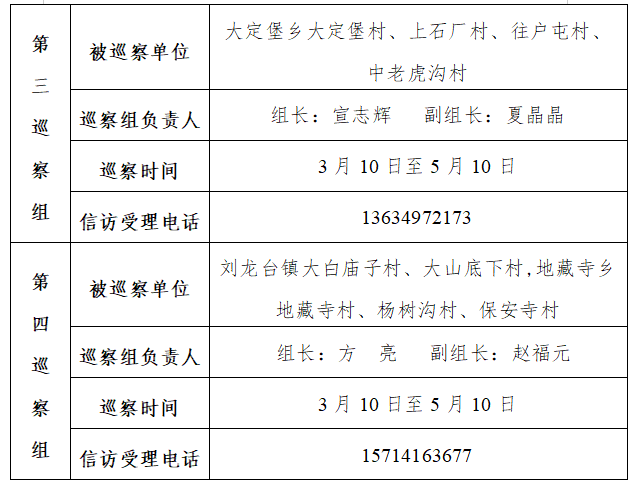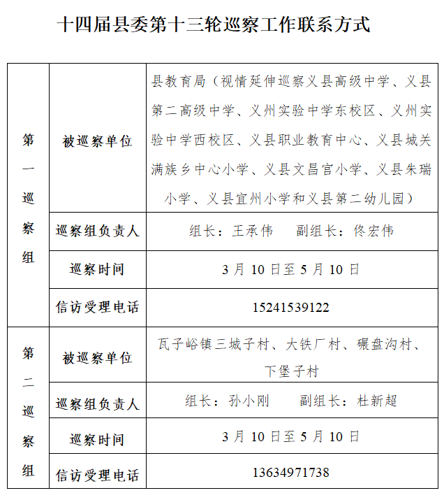 县委巡察组进驻情况一览表 根据巡视工作条例规定,县委巡察组在巡察期间主要受理反映被巡察单位领导班子人员及其他重要岗位党员干部问题的来信、来电,重点是关于违反政治纪律、组织纪律、廉洁纪律、群众纪律、工作纪律、生活纪律等方面的举报和反映。其他不属于巡察受理范围的信访问题,将按规定由有关部门处理。 全媒体记者:谢楠 编辑:陈思霖 校对:李奇 主编:葛芯