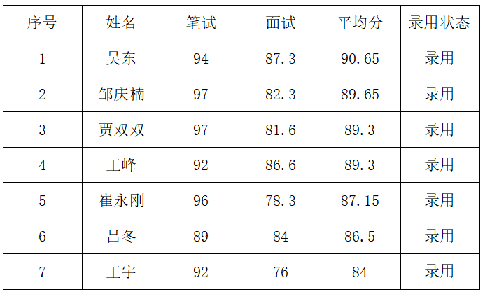 3. 录用说明:本次录用严格遵循“公开、公平、公正、择优录取”原则,综合成绩为笔试、面试平均分,按岗位招聘计划从高到低确定拟录用人员。