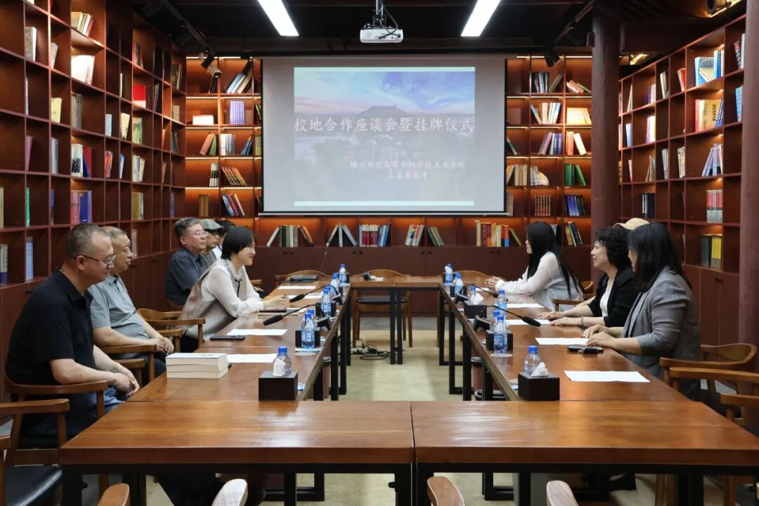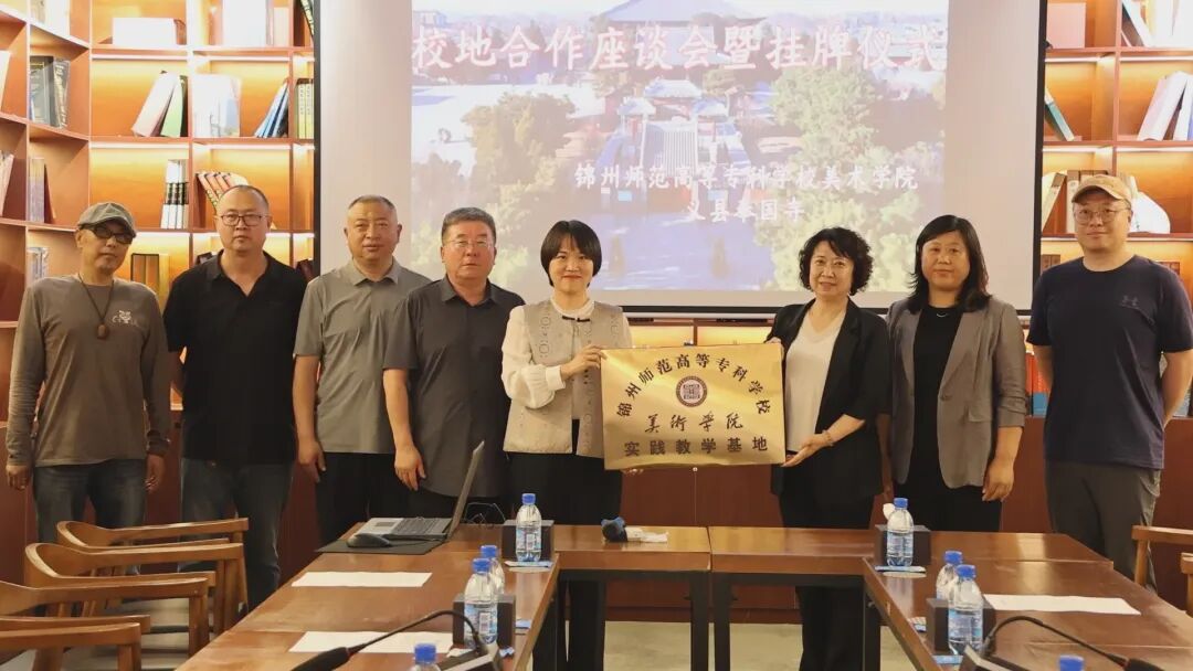 会后,双方领导共同为“锦州师范高等专科学校美术学院实践教学基地”揭牌。随后,解艳一行参观了奉国寺天工文创馆、非遗文创馆和宜州好物馆,进一步加深了对义县文化产业发展成果的了解。