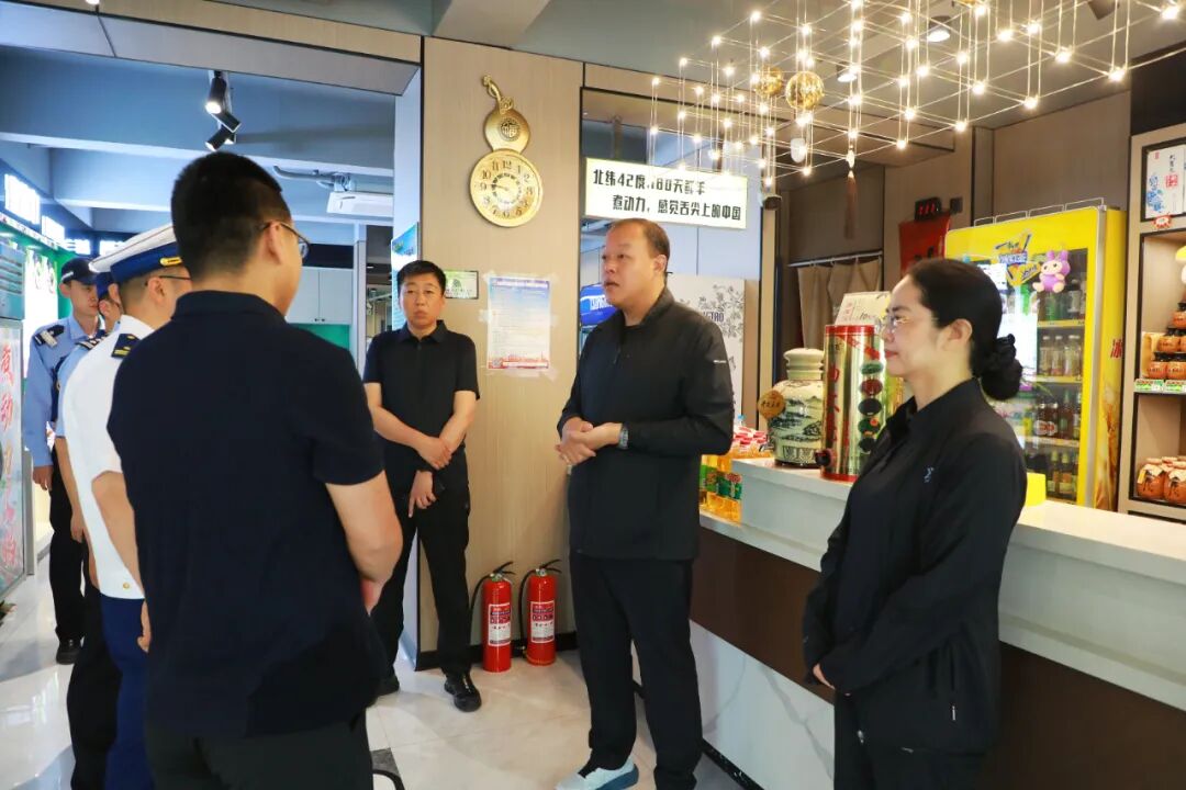 郭廓一行先后来到餐饮场所和景区,通过现场勘查、设备测试、台账查阅等方式,逐项核查了消防安全情况。他详细询问了负责人的经营状况,重点检查了厨房的消防设施、灭火器材以及疏散通道等关键部位。对于发现的隐患问题,当场提出整改意见,并要求相关部门跟踪督办,确保隐患得到闭环管理。在奉国寺,景区内游客络绎不绝,秩序井然,郭廓与值班人员亲切交谈,对他们的辛勤工作表示肯定。