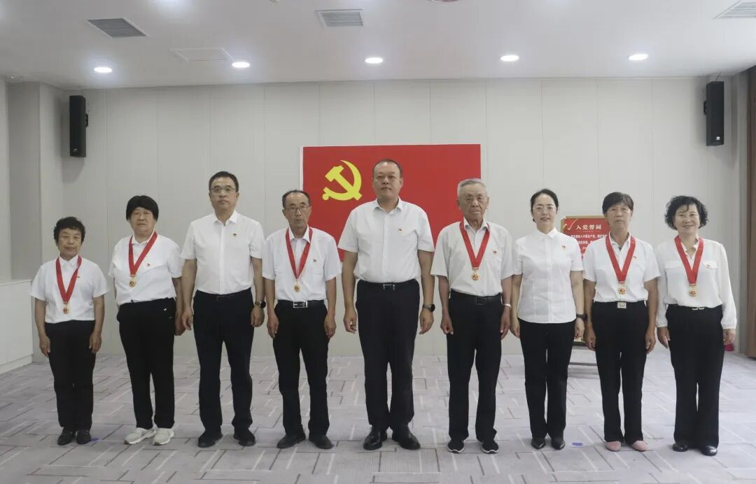 会上,县领导为党龄满50周年的老党员颁发纪念章,老党员为新党员代表佩戴党员徽章。在县委书记郭廓的领誓下,新党员庄严宣誓,老党员重温入党誓词。