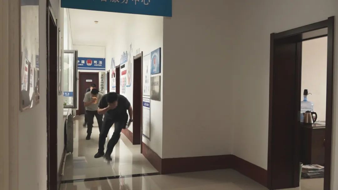 随着消防安全员拉响尖锐的警报声,模拟演练的浓烟迅速在窗口蔓延开来,标志着演练正式开始。干部职工迅速反应,按照预定的疏散路线,用湿毛巾捂住口鼻,弯腰低头,紧张而有序地撤离到安全区域。整个疏散过程有条不紊,所有人员在极短的时间内全部安全疏散到位,并进行了人数清点,确保了无遗漏。紧接着,消防救援队伍迅速抵达现场,他们统筹调度力量,迅速展开救援行动将火情成功扑灭。