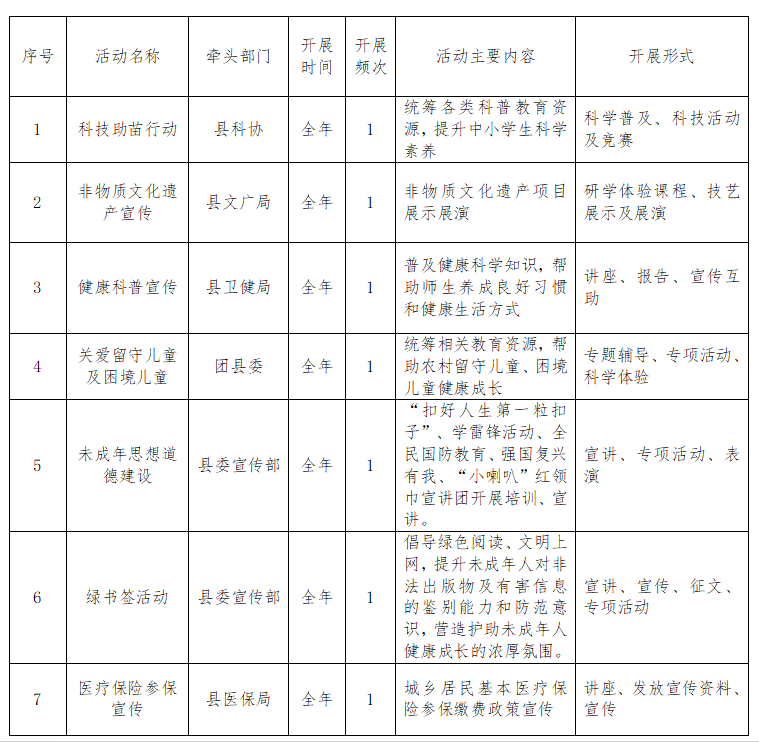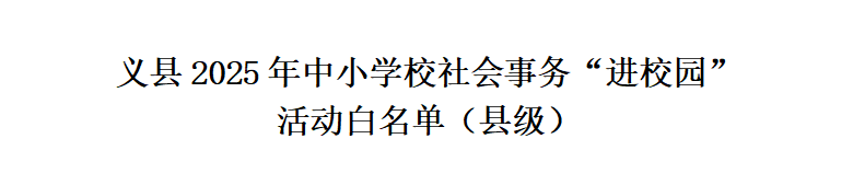 为持续推进整治形式主义为基层减负,按照中央教育工作领导小组秘书组关于开展规范社会事务进校园为中小学教师减负专项整治工作的部署及省、市有关专项整治工作要求,6月25日,县委教育工作领导小组秘书组制定了2025年义县7项社会事务“进校园”活动白名单。
