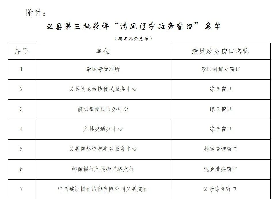 在锦州市第三批“清风辽宁政务窗口”评选中,义县行政审批服务中心综合出件窗口等15个政务窗口脱颖而出,喜获殊荣。这些清风窗口以“廉洁高效、便民利企”为核心,将“办事不找关系、用权不图好处”理念融入服务全链条,让企业群众切实感受到政务服务清正之风。