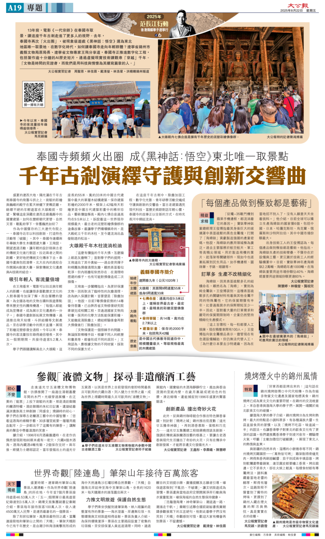 千年古韵映今辉,文化薪火永相传。日前,香港《大公报》记者团队深入辽宁义县,以专业视角聚焦千年古刹奉国寺,通过实地探访、深度对话与历史溯源,全方位挖掘这座辽代皇家寺院的文化价值与时代意义。报道以大半个版面的篇幅于8月22日重磅刊发,以生动的笔触、珍贵的影像与严谨的考据,展现了奉国寺作为中华文明精神标识的独特魅力,引发海内外读者广泛关注,取得良好传播效果。