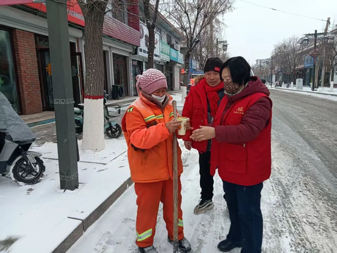 12月13日,我县迎来降雪天气。雪停后,环卫工、交警、城建、综合执法等部门迅速行动,为保障道路通畅和群众出行安全坚守岗位。团县委也积极响应,组织“红马甲”志愿者走上街头,为坚守岗位的一线人员送上热粥,帮助清理积雪,在严寒天气里给他们送去了温暖与欢乐,也让家乡感受新时代义县青年的热情与朝气。