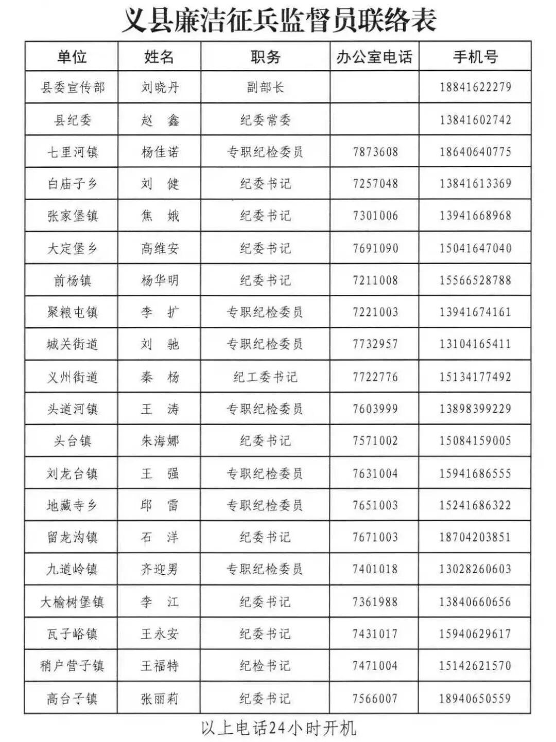 附件:义县廉洁征兵监督员联络表。