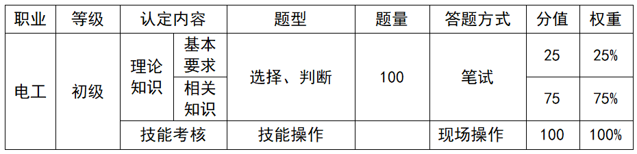 1.认定工种及等级:电工初级