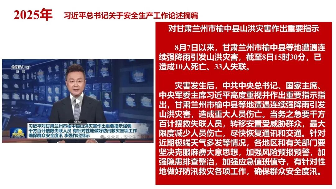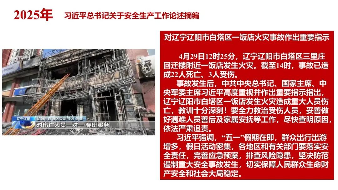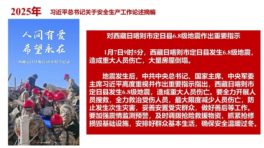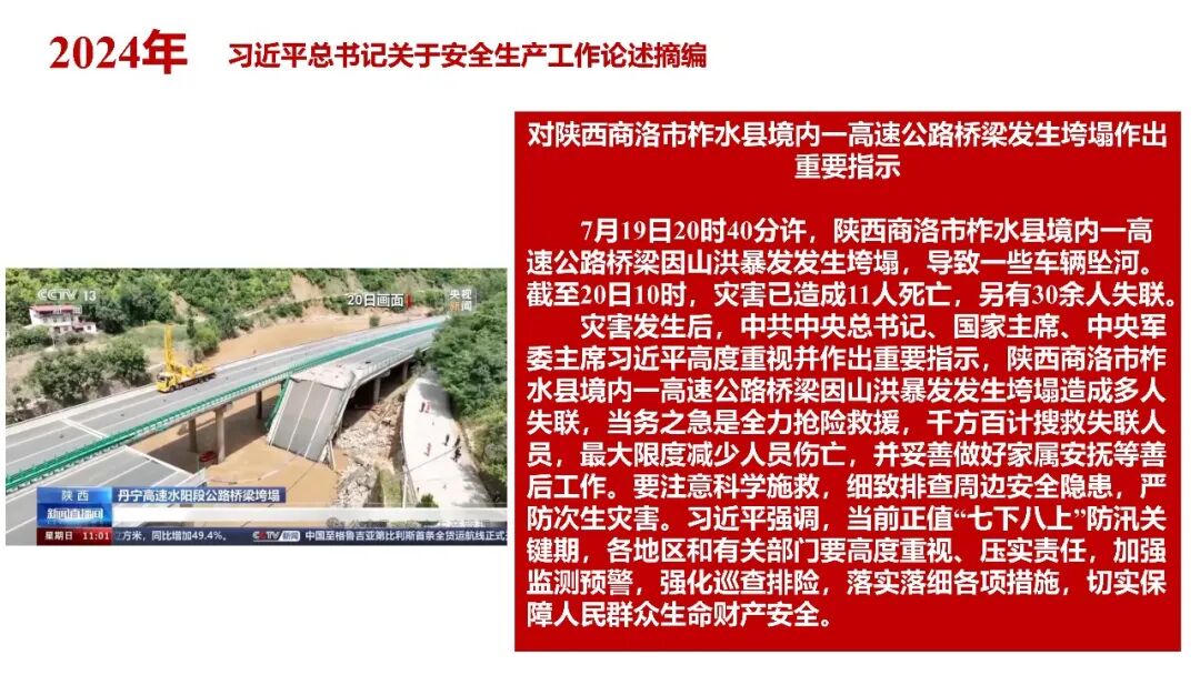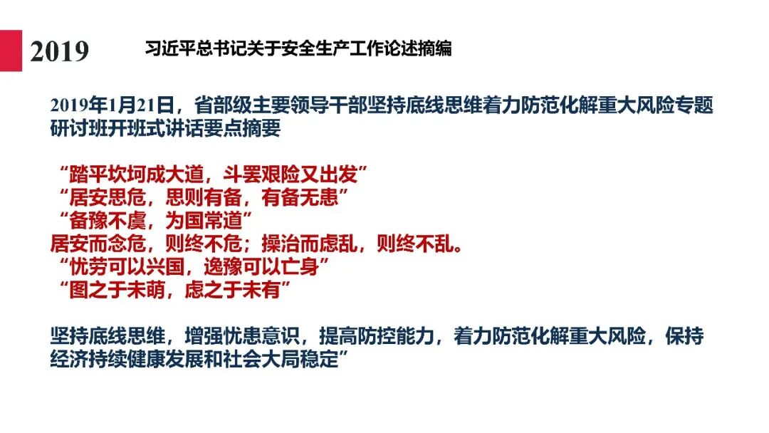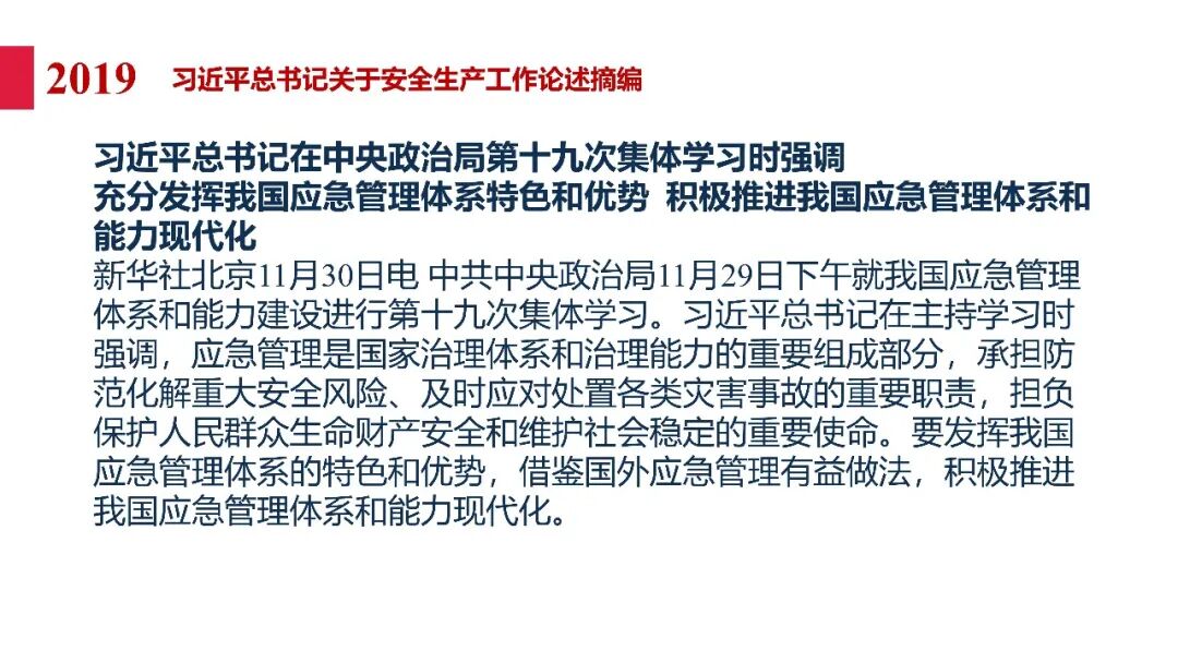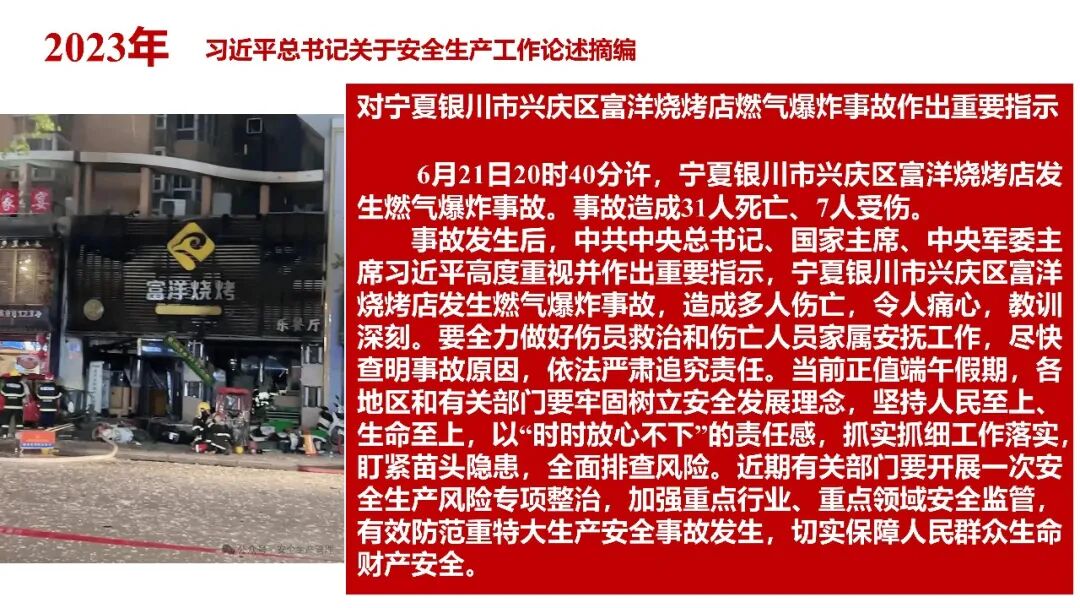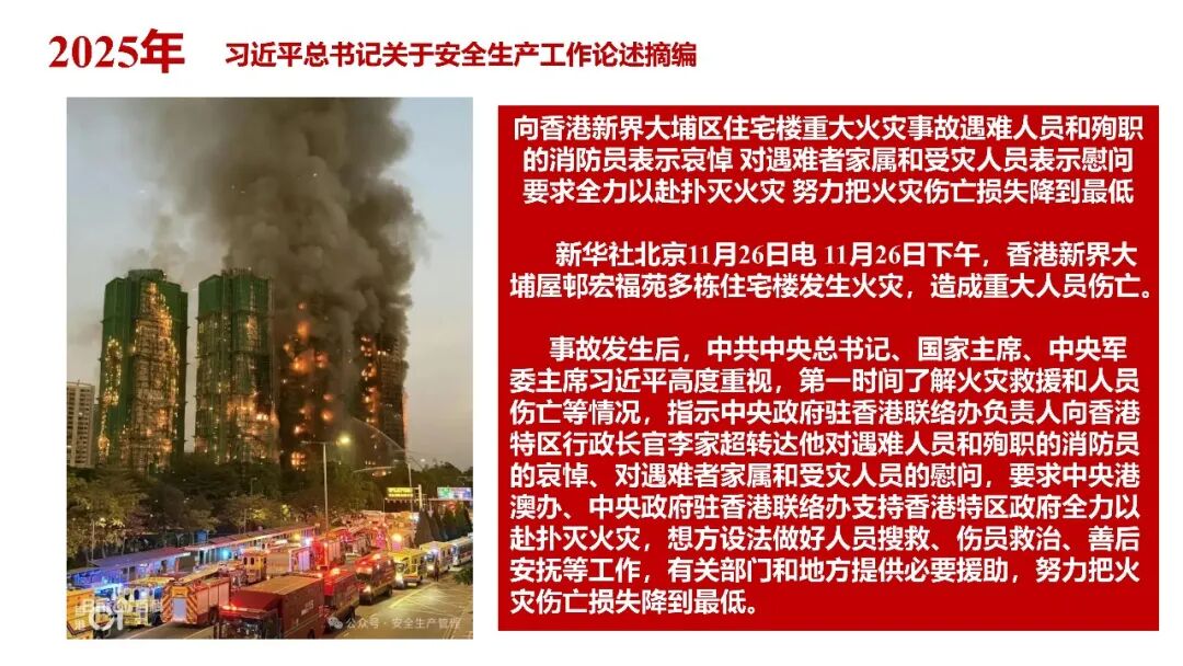 牢固树立安全发展理念和红线意识:习近平总书记强调 “人命关天,发展决不能以牺牲人的生命为代价。这必须作为一条不可逾越的红线”。要始终把人民群众生命安全放在第一位,任何时候、任何情况下都不能突破这条红线,同时要统筹好发展和安全,不能以牺牲安全为代价换取发展。建立健全安全生产责任体系:党政同责:安全生产工作,党委和政府都要抓,党政一把手必须亲力亲为、亲自动手抓。明确党政领导班子成员一岗双责、齐抓共管,把责任落实到每一个领导工作岗位上。三管三必须:坚持管行业必须管安全、管业务必须管安全、管生产经营必须管安全,形成完整的安全生产领导责任和监管责任体系。企业主体责任:所有企业都必须认真履行安全生产主体责任,做到安全投入到位、安全培训到位、基础管理到位、应急救援到位,确保安全生产,中央企业要带好头做表率。建立科学的安全生产监管机制和方法:以防范和遏制重特大事故为重点:各级安全监管监察部门要牢固树立红线意识,坚持标本兼治、综合治理、系统建设,统筹推进安全生产领域改革发展。提高安全监管执法实效:做到 “全覆盖、零容忍、严执法、重实效”,采用 “四不两直” 方式,即不发通知、不打招呼、不听汇报、不用陪同和接待,直奔基层、直插现场。加大安全生产指标考核权重:各地区各部门、各类企业都要坚持安全生产高标准、严要求,招商引资、上项目要严把安全生产关,实行安全生产和重大安全生产事故风险 “一票否决”。建立长效机制:针对抓安全生产时紧时松问题,要建立长效机制,坚持常、长二字,经常、长期抓下去,特别是要抓薄弱环节,抓那些还不够重视的领域和行业。 打破安全事故 “不可避免论”:习近平总书记的论述打破了 “事故阶段论” 和 “可以原谅论”,使我们深刻认识到,抓好安全生产工作的信心决心不能动摇,保障人民生命安全必须更加积极主动作为,不能走西方工业化国家的老路。