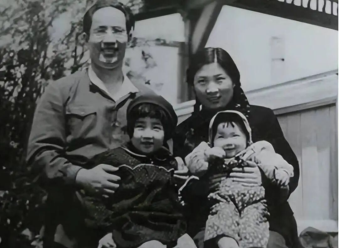 1948年,朱瑞在哈尔滨与妻子潘彩琴,女儿淮北、东北合影。