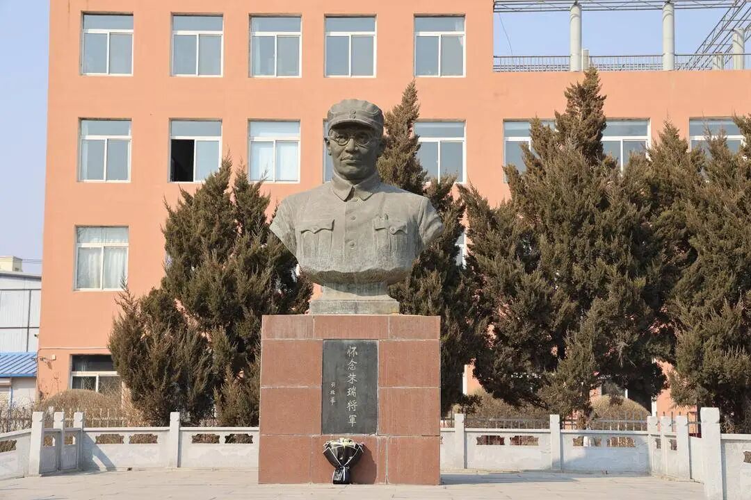 朱瑞将军的牺牲地修建了他的半身青铜雕像,旁边是朱瑞小学。